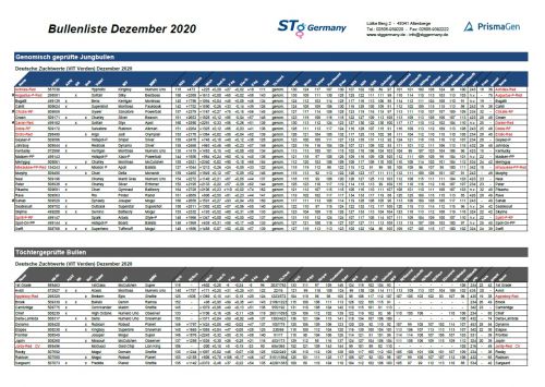 Nach der Dezember Zuchtwertschätzung haben wir nun ein neues Holstein-Bullenangebot für Sie zusammengestellt. Die dazugehörige Bullenliste mit Preisen finden Sie hier: