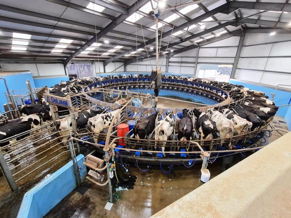 Blick in den Jungviehstall und ins Melkhaus der Familie Dickinson