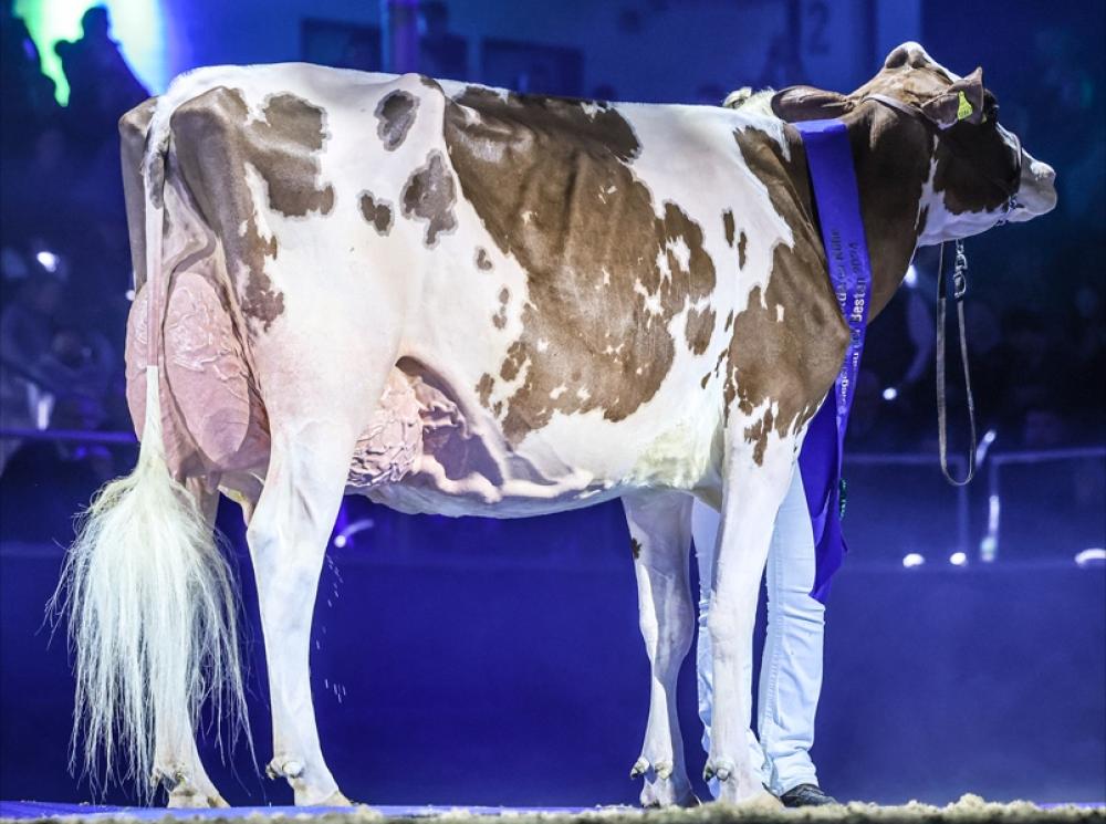 Roslie (v. MIRAND PP) wurde schließlich zur Gesamtsiegerkuh der Schau gewählt, Elena (CHIEF) zur Reservesiegerin.