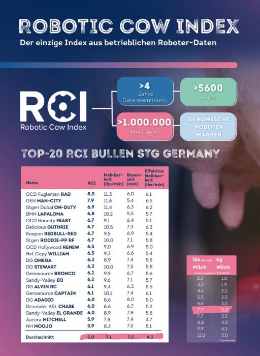 Der neue RCI Index ist ab jetzt unsere neue Grundlage für die Beurteilung der Bullen, ob diese sich für den Einsatz in Roboter-Betrieben eignen.